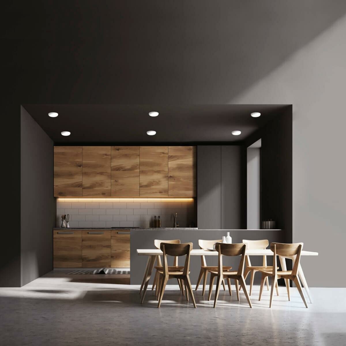 Правильное размещение светильников Frameless позволяет добиться равномерной освещенности всего пространства, оптимизировать расходы на электроэнергию и даже визуально увеличить объем помещения. Потолочные светильники Frameless прекрасно подойдут в качестве основного источника освещения в спальнях, прихожих и ванных комнатах.