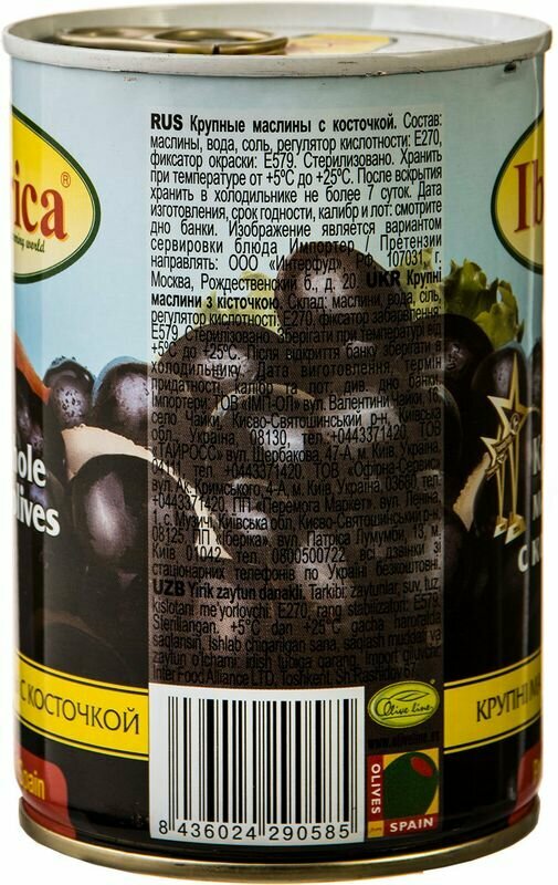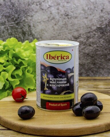 Iberica Big Whole - крупные черные маслины с косточкой из сердца Испании. Прекрасно сочетаются с красным и белым вином. Удобно использовать для приготовления салатов, добавлять в супы. Любимое лакомство гурманов.