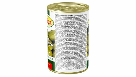 | Состав | оливки, вода, соль, усилитель вкуса и аромата е621, регуляторы кислотности е270, е330, антиокислитель е300 |