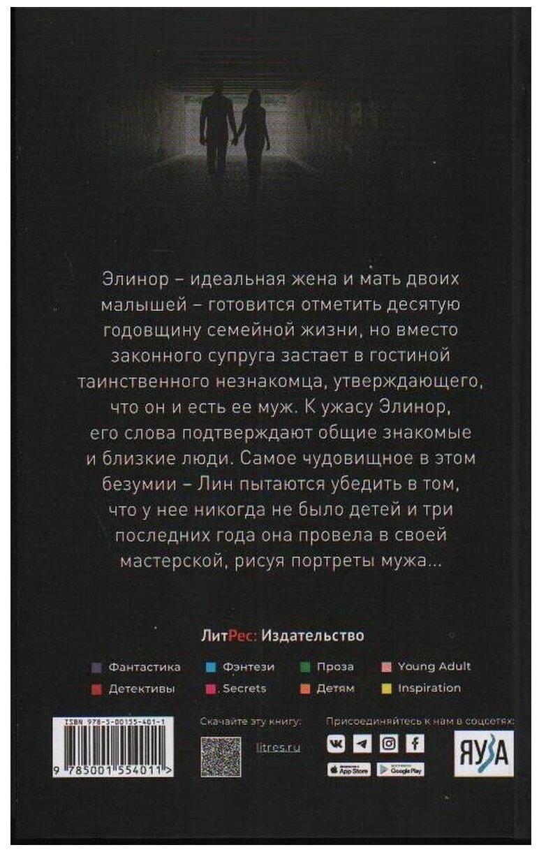 Элинор - идеальная жена и мать двоих малышей - готовится отметить десятую годовщину семейной жизни, но вместо законного супруга застает в гостиной таинственного незнакомца, утверждающего, что он и есть ее муж. К ужасу Элинор, его слова подтверждают общие знакомые и близкие люди. Самое чудовищное в этом безумии - Эль пытаются убедить в том, что у нее никогда не было детей и три последних года она провела в своей мастерской, рисуя портреты мужа...