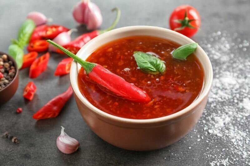 | Состав | вода питьевая, сахар, перец красный чили, патока, концентрированное грушевое пюре, соль, чеснок, загустители (ксантановая камедь, Е1442), концентрированный ананасовый сок, паприка, экстракт перца чили, регулятор кислотности уксусная кислота, ароматизатор натуральный, краситель (кармины) |