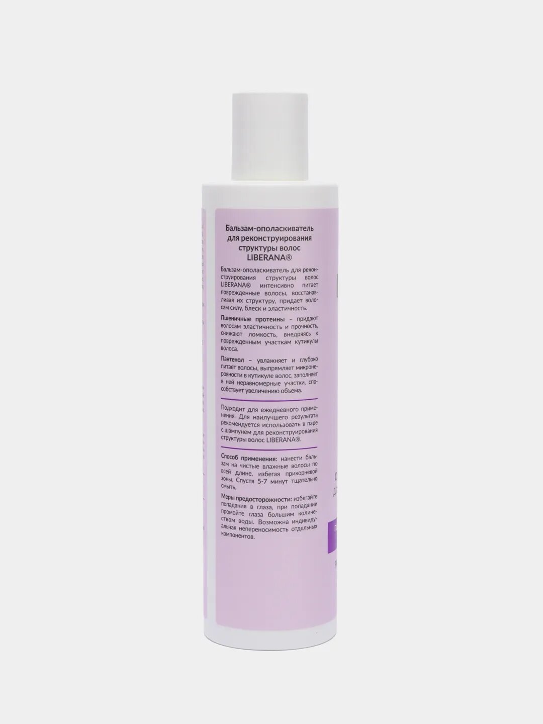 Бальзам-ополаскиватель для реконструирования структуры волос LIBERANA интенсивно питает поврежденные волосы, восстанавливая их структуру, придает волосам силу, блеск и эластичность.