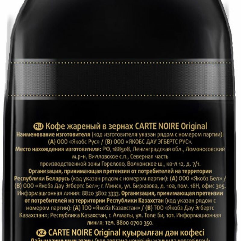 100% Arabica. Достигнув совершенства в кофейном мастерстве, Carte Noire создал новый стандарт качества кофе - Carte Noire Original. Богатый гармоничный вкус Carte Noire Original достигается благодаря отобранным кофейным зёрнам 100% Arabica Exclusif из Латинской Америки и Азии. Обжарка Carte Noire «Огонь и Лёд» раскрывает всю интенсивность и богатство вкуса натурального кофейного зерна, воплощаясь в совершенный вкус кофе.