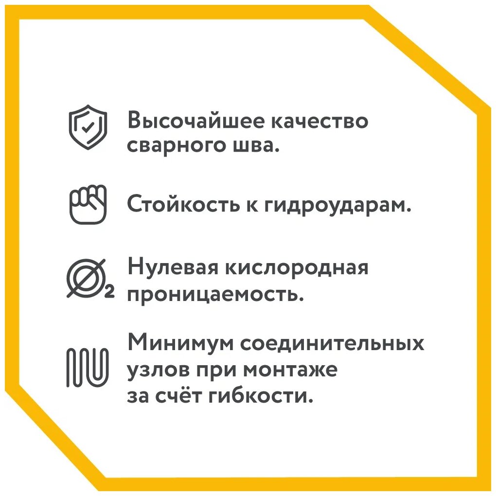 Типоразмер: 20АДиаметр:наружный 25,6 мм внутренний 21 ммТрубы водопроводные гофрированные Stahlmann широко применяются для изготовления гибких подводок для водопотребляющего оборудования.Гибкие подводки из гофрированных труб Stahlmann обеспечивают надежное и герметичное соединение с высокой надежностью и длительным сроком службы.Труба водопроводная Stahlmann это гофрированная труба из нержавеющей стали высочайшего качества!Широко применяется при монтаже гибких подводок для водопотребляющего оборудования, газового оборудования, водяных теплых полов, систем пожаротушения, кондиционирования и вентиляции, а также в формате кабель-каналов для дополнительной защиты силовых и слаботочных кабелей от внешних воздействий. Гибкие подводки из гофрированных труб гарантируют герметичное соединение с высокой надежностью и длительным сроком службы (пожизненная гарантия!).Труба 20А гофрированная Stahlmann не меняет проходного сечения на сгибах и при максимальной деформации, стойкая к гидроударам, не пропускает кислород, легко гнется и держит форму, и не боится перепадов температур! Повышенная устойчивость к агрессивным средам позволяет применять трубы для транспортировки промышленных жидкостей и газа. Труба Бренда Stahlmann имеет несколько разновидностей цветовых решений: серебристая, черная, золотистая, белая, красная. Черная гофротруба может послужить в качестве внешнего кабель-канала электропроводки и стать частью декора стиля лофт.