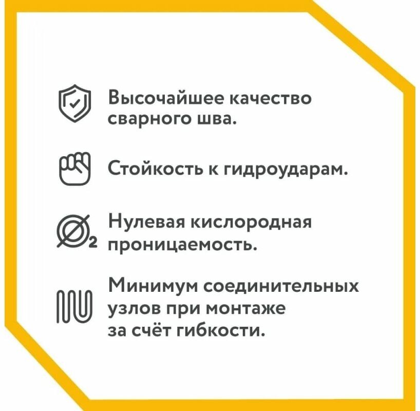 Типоразмер: 32АДиаметр:наружный 37,6 мм внутренний 32 ммТруба водопроводная Stahlmann — это гофрированная труба самого высокого качества.Трубы водопроводные гофрированные Stahlmann широко применяются для изготовления гибких подводок для водопотребляющего оборудования.Гибкие подводки из гофрированных труб Stahlmann обеспечивают надежное и герметичное соединение с высокой надежностью и длительным сроком службы.Труба водопроводная Stahlmann это гофрированная труба из нержавеющей стали высочайшего качества!Широко применяется при монтаже гибких подводок для водопотребляющего оборудования, газового оборудования, водяных теплых полов, систем пожаротушения, кондиционирования и вентиляции, а также в формате кабель-каналов для дополнительной защиты силовых и слаботочных кабелей от внешних воздействий. Гибкие подводки из гофрированных труб гарантируют герметичное соединение с высокой надежностью и длительным сроком службы (пожизненная гарантия!).Труба 32А гофрированная Stahlmann не меняет проходного сечения на сгибах и при максимальной деформации, стойкая к гидроударам, не пропускает кислород, легко гнется и держит форму, и не боится перепадов температур! Повышенная устойчивость к агрессивным средам позволяет применять трубы для транспортировки промышленных жидкостей и газа. Труба Бренда Stahlmann имеет несколько разновидностей цветовых решений: серебристая, черная, золотистая, белая, красная. Черная гофротруба может послужить в качестве внешнего кабель-канала электропроводки и стать частью декора стиля лофт.