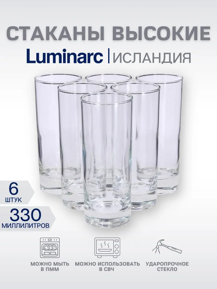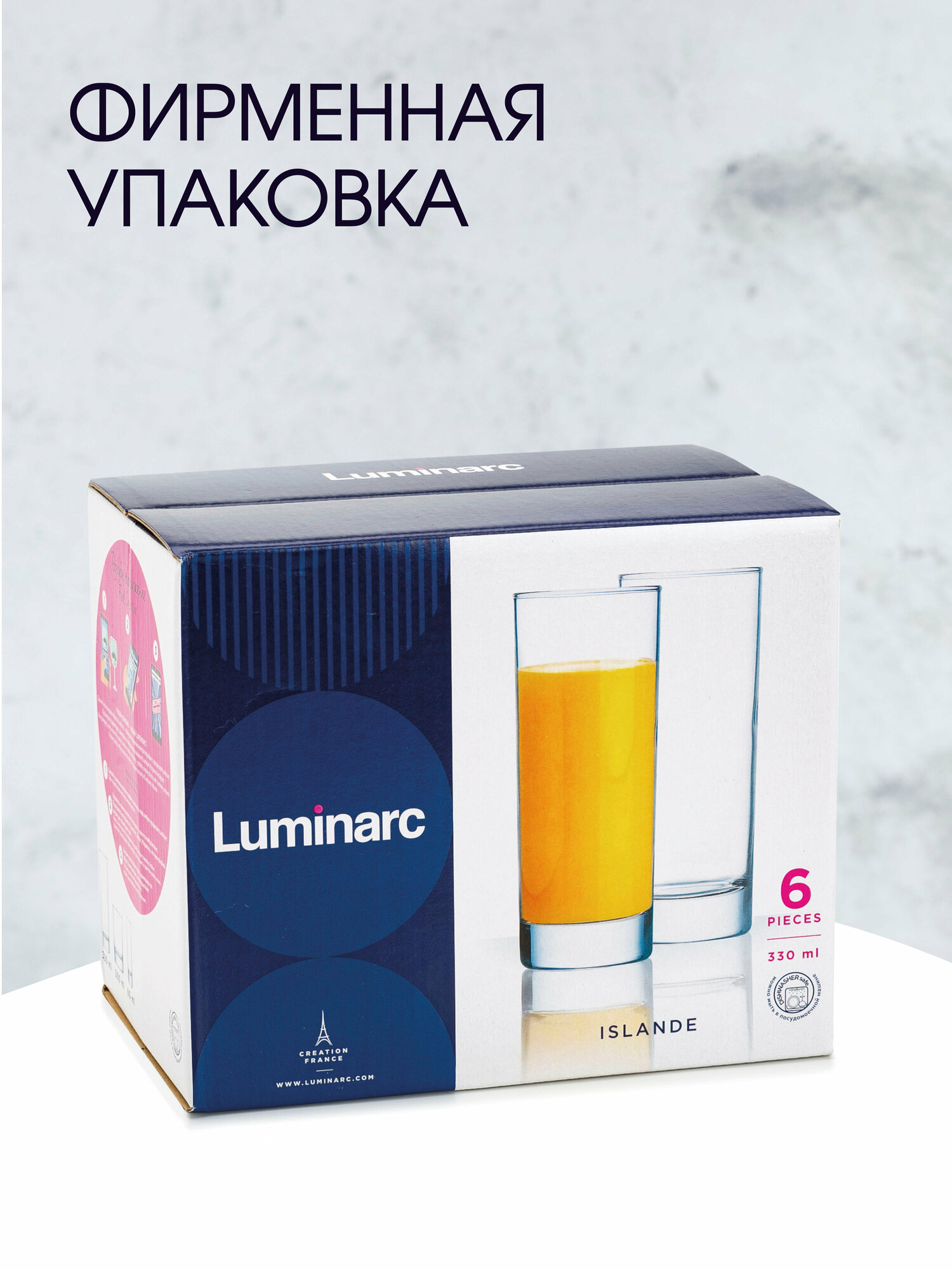 Стаканы Luminarc Islande 330 мл (6 шт): универсальный набор для дома, дачи и подарка — прочное стекло, стильный минимализм и безопасное использование в СВЧ.