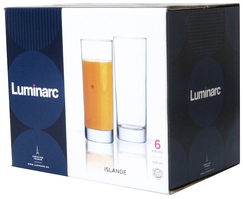 Набор стаканов Luminarc Islande 330 мл — это сочетание классического дизайна, прочности и функциональности. Прозрачное стекло, высокая форма типа «коллинз» и оптимальный объём делают эти стаканы удобными для ежедневного использования и сервировки праздничного стола. Если вы ищете, какой стакан выбрать для воды или универсальных напитков, этот набор станет отличным решением для семьи или небольшой компании.
