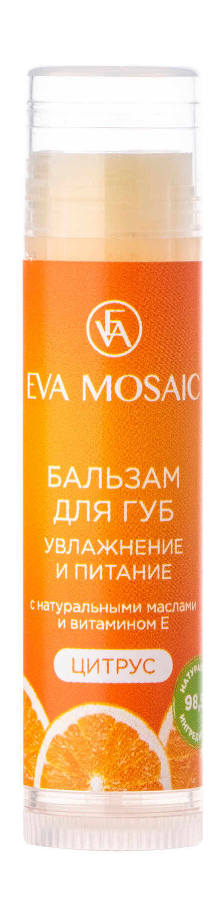 | Полное наименование | Бальзам для губ Eva Mosaic Увлажнение и питание Цитрус 5 г |