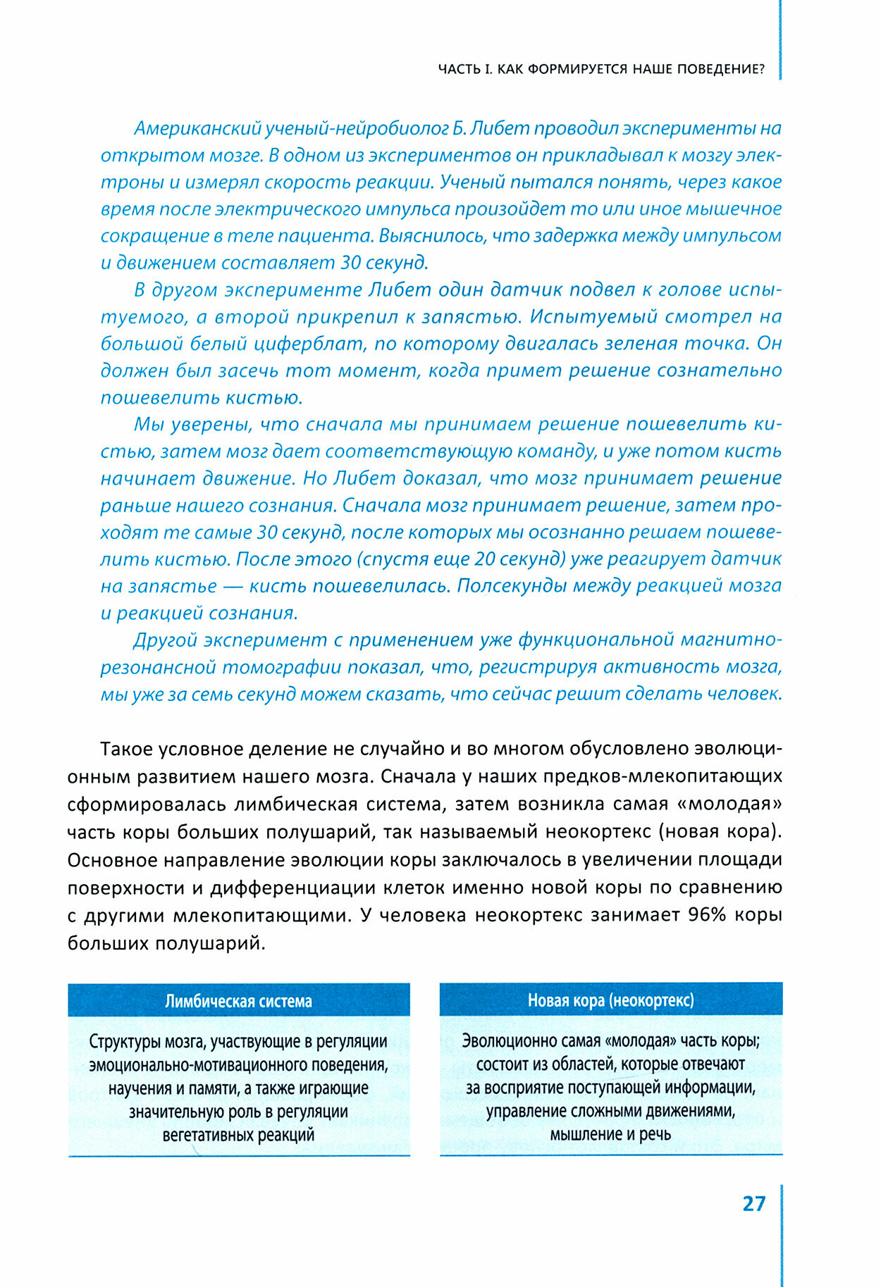 Эта книга поможет понять, как формируется наше поведение и как его изменить. Вы узнаете, на какие поведенческие модели мы запрограммированы, как возникают нейронные связи, от чего мы на самом деле получаем удовольствие и каким образом не попасть в ловушку выученной беспомощности. Следуя программе упражнений, вы избавитесь от вредной привычки или сформируете новую - полезную.