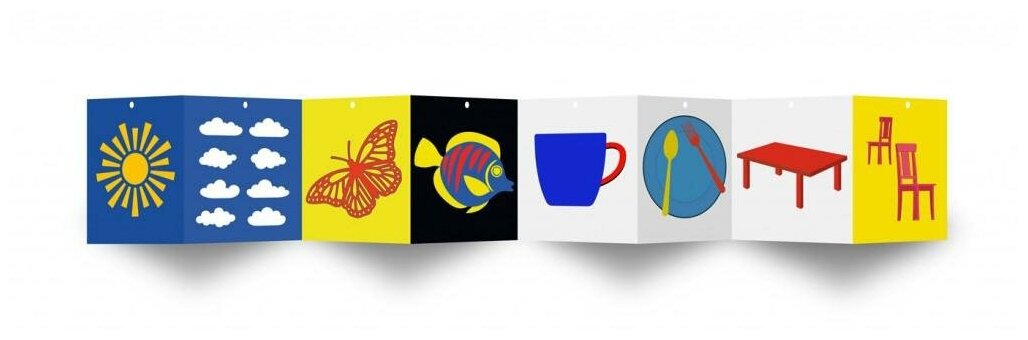 Книга предназначена для развития ребёнка с самого рождения. Контрастные картинки следует начинать рассматривать с чёрно-белых, потом переходить к цветным.