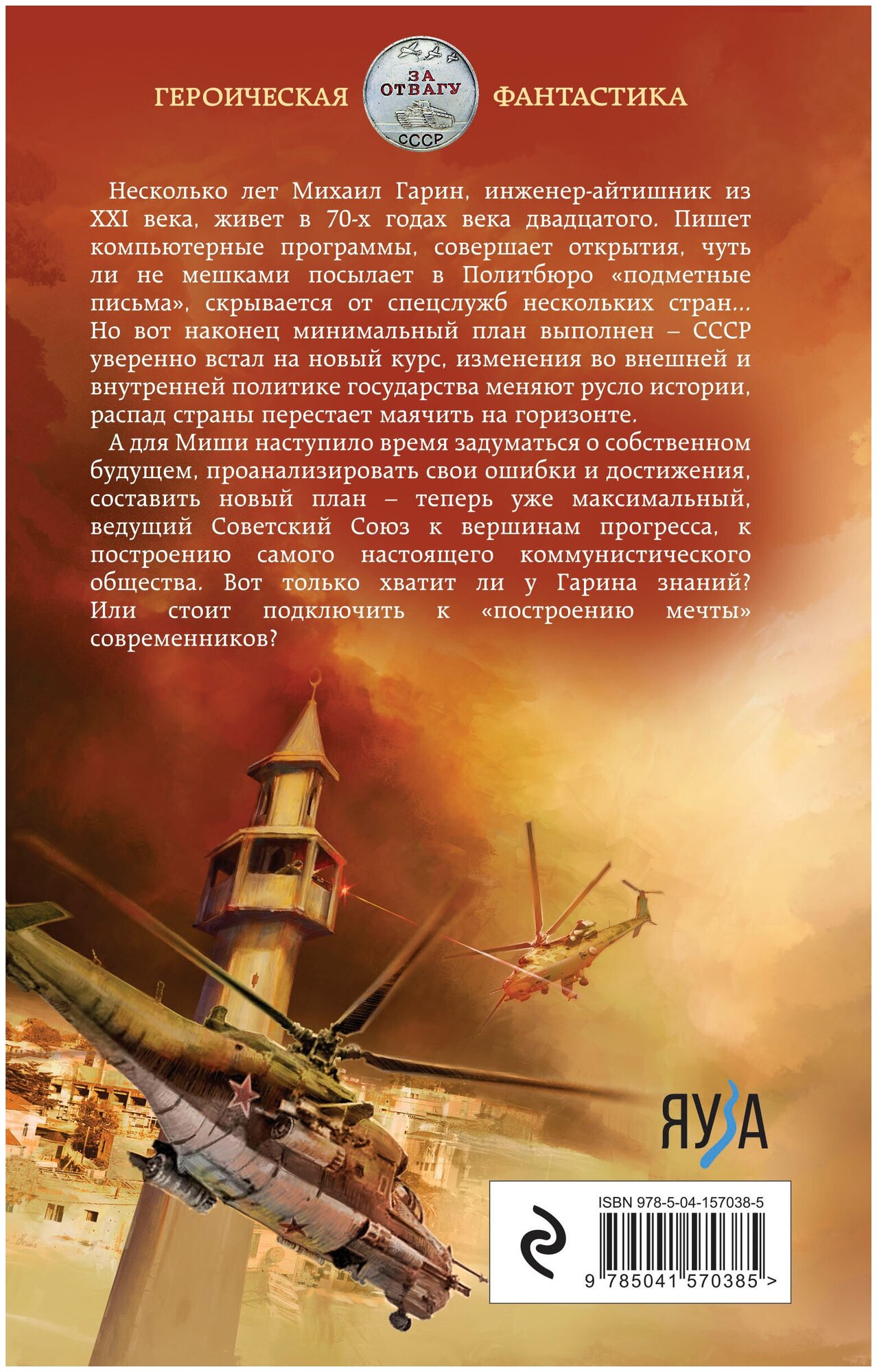 Несколько лет Михаил Гарин, инженер-айтишник из 21 века, живет в 70-х годах века двадцатого. Пишет компьютерные программы, совершает открытия, чуть ли не мешками посылает в Политбюро "подметные письма", скрывается от спецслужб нескольких стран... Но вот, наконец, минимальный план выполнен - СССР уверенно встал на новый курс, изменения во внешней и внутренней политике государства меняют русло истории, распад страны перестает маячить "на горизонте".