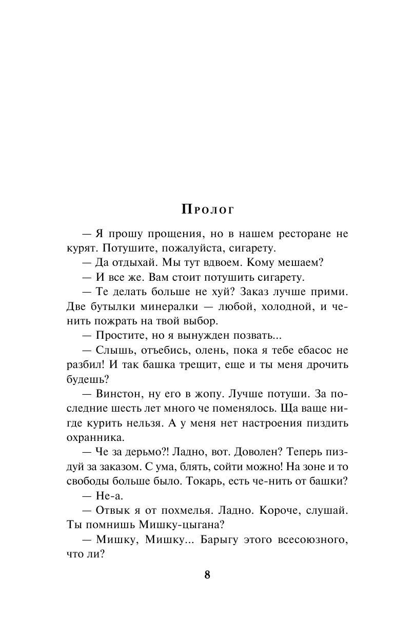 Сразу хочу предупредить, в книге много... нет! ОЧЕНЬ МНОГО нецензурной лексики, сцен насилия, тюремного жаргона и просто не приятных моментов.