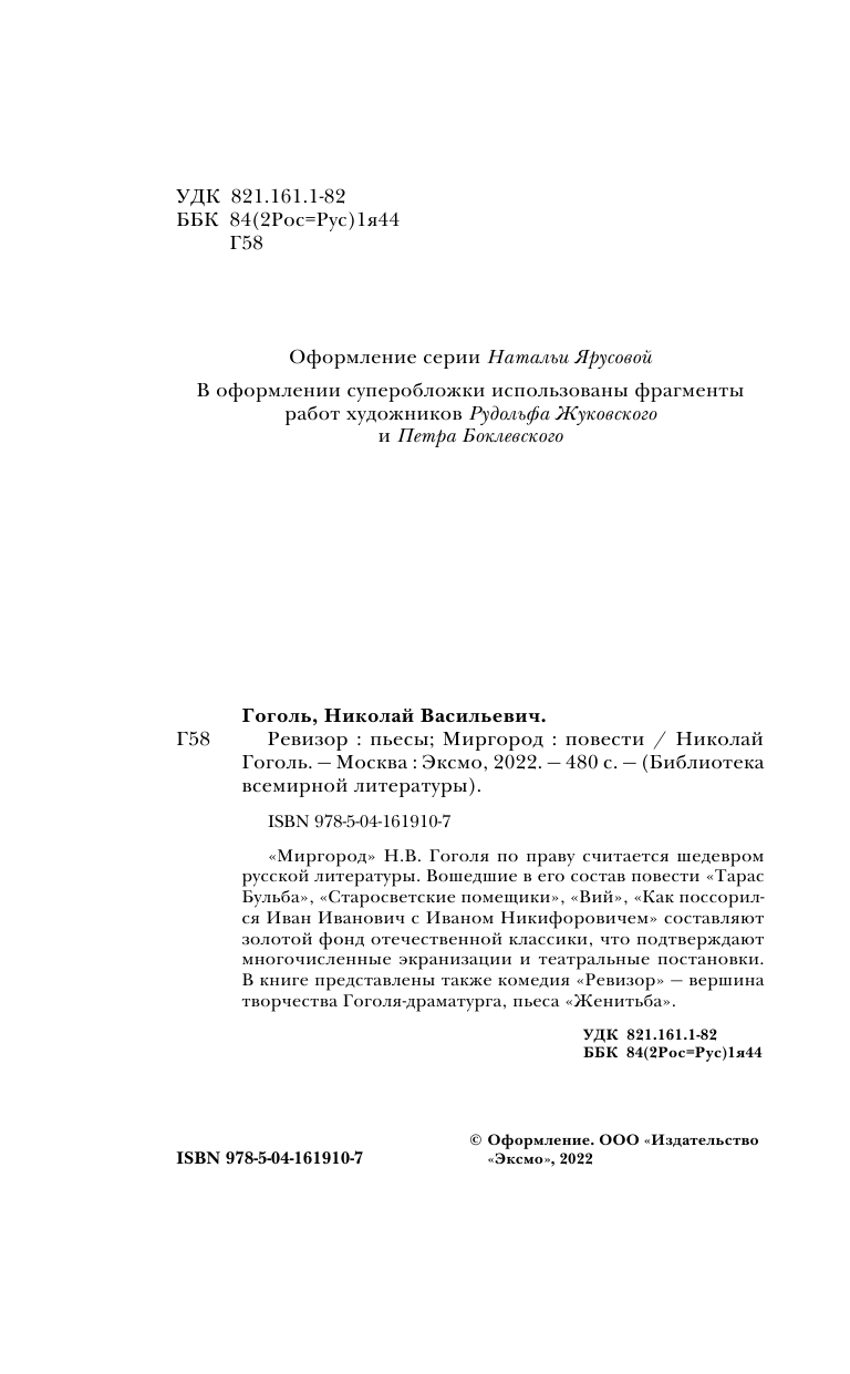 Ревизор. Миргород. Повести. Пьесы (Гоголь Николай Васильевич); ООО "Издательство "Эксмо", 2022