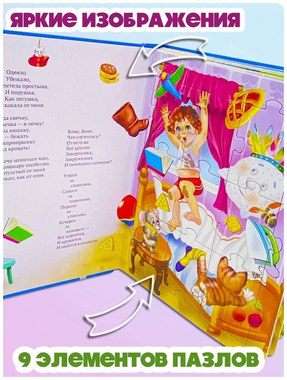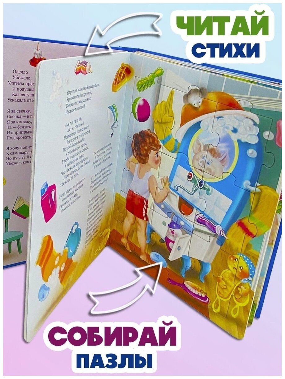 Книжка-пазл это книга и игрушка для развития ребенка. За такой книжкой ваш ребёнок проведёт время с пользой и удовольствием. Часть иллюстраций в книге представлена в виде пазлов. На обороте подсказка, как обращаться с пазлами. Страница за страницей, и новая картинка разбирается на фрагменты увлекая непоседу, а веселые и красочные персонажи подарят ему хорошее настроение! Пазлы отлично развивают моторику рук, память и мышление.