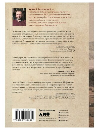 Переводы библейских книг и комментарии к ним давно сделали имя Андрея Десницкого известным в России. Книга о Ветхом Завете написана с позиции здравого смысла и качественного историко-филологического анализа. Автор прекрасно владеет русским литературным языком, убедительно излагает и доносит до читателя свою мысль. Он не боится сомневаться, не дает готовых рецептов и однозначных толкований. Чтение порождает, пожалуй, больше вопросов, чем ответов, стимулируя собственную рефлексию, поиски и обновление смыслов.