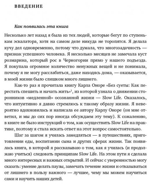 Ее автор раскрывает основные принципы движения Slow Life, которое активно развивается с конца 2000-х годов и увлекло сотни тысяч людей по всему миру. Она рассказывает о поиске собственного, уникального ритма жизни и дает практические и легко реализуемые советы о том, как осознанно замедляться, сохраняя продуктивность и получая удовольствие от каждого момента.