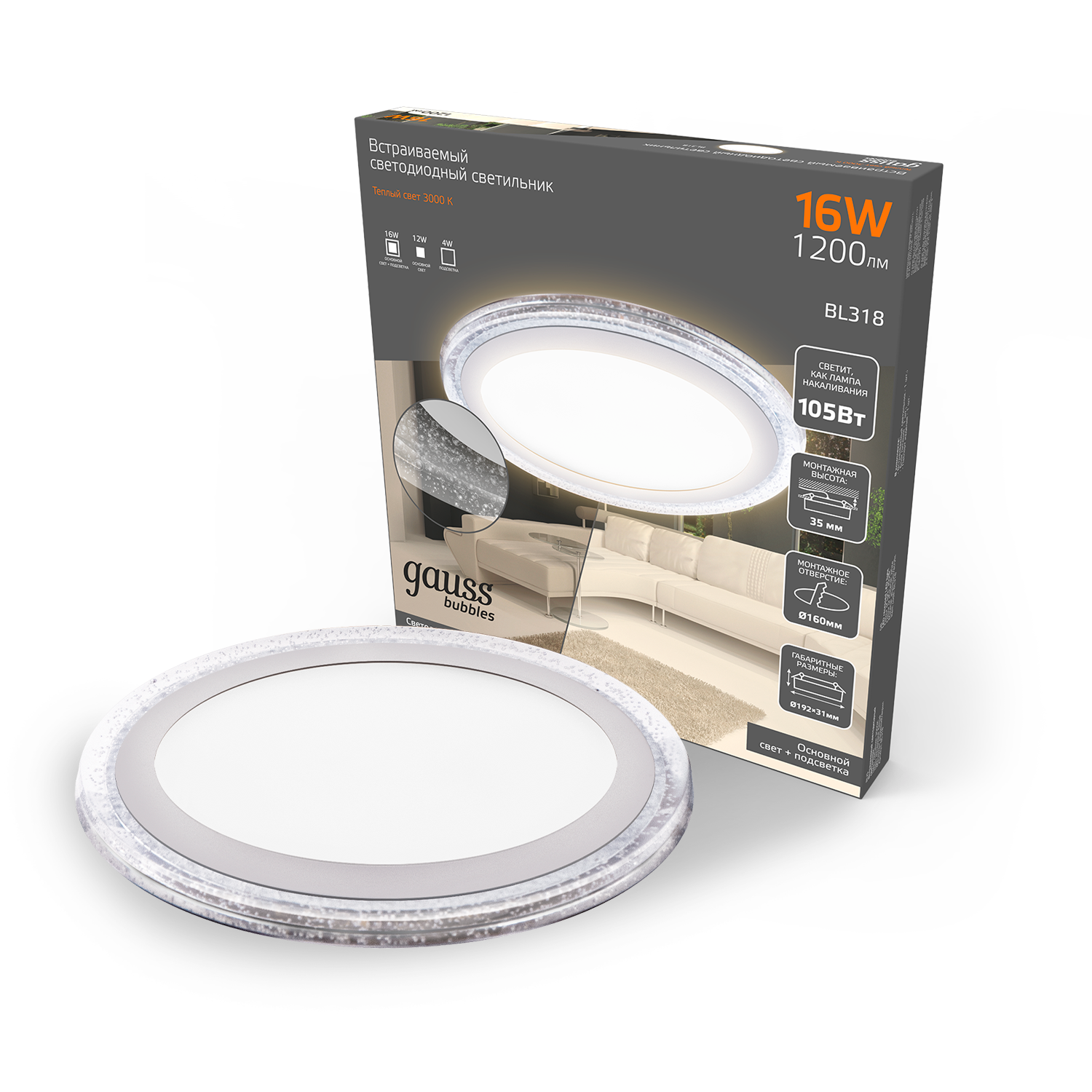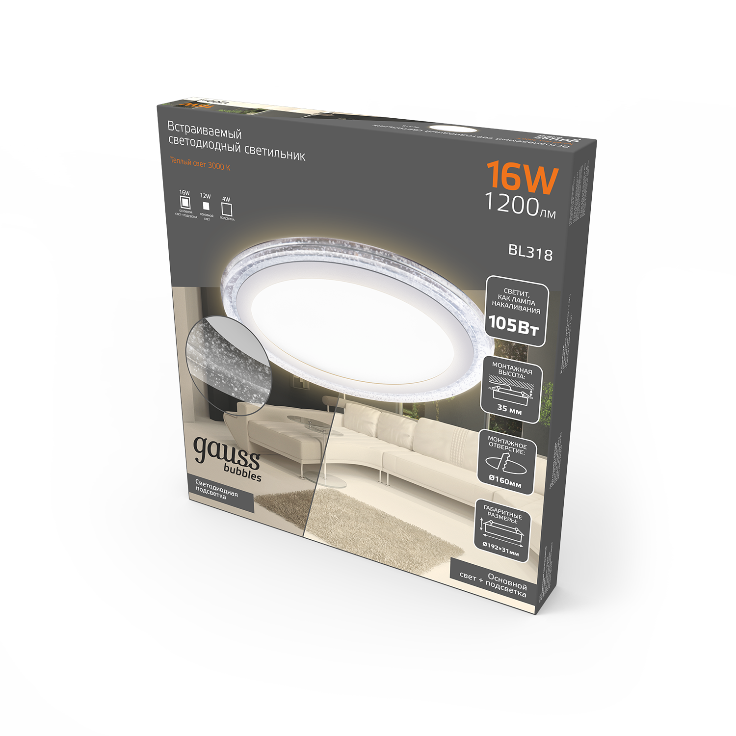 Встраиваемый светодиодный светильник Gauss Backlight Bubbles BL318