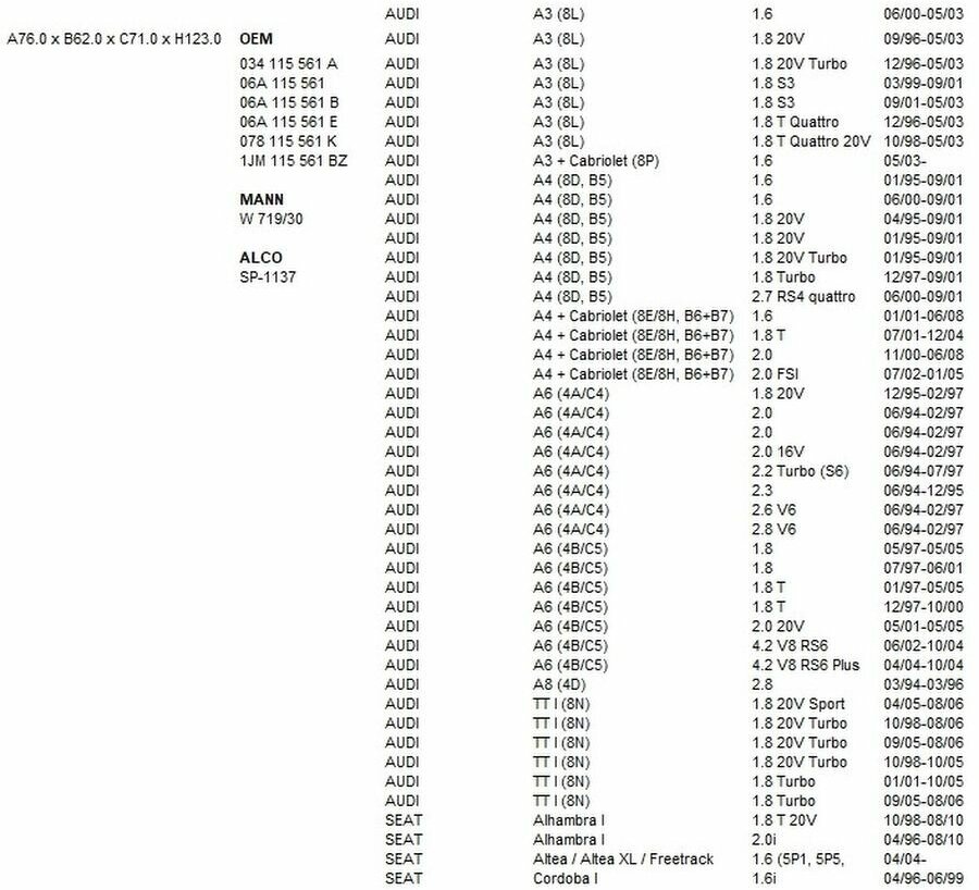 | Тип | масляный фильтр |