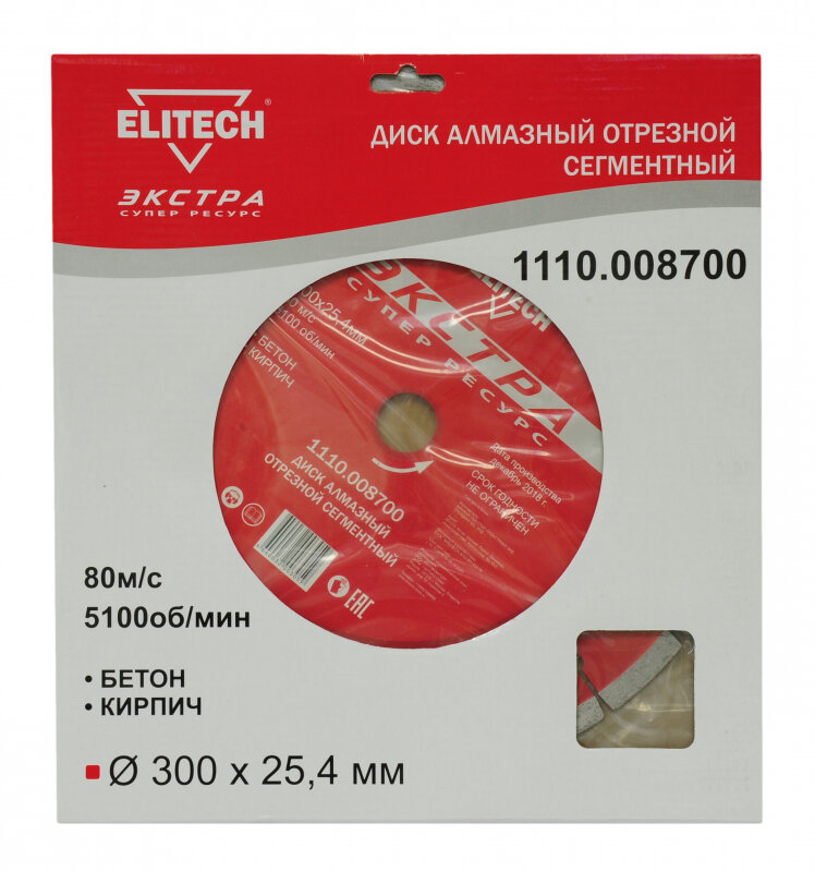Алмазный диск Elitech по асфальту 300мм 25.4мм 1шт 1110.009000