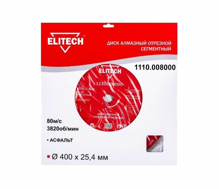 Алмазный диск Elitech по асфальту 400мм 25.4мм 1шт 1110.008000