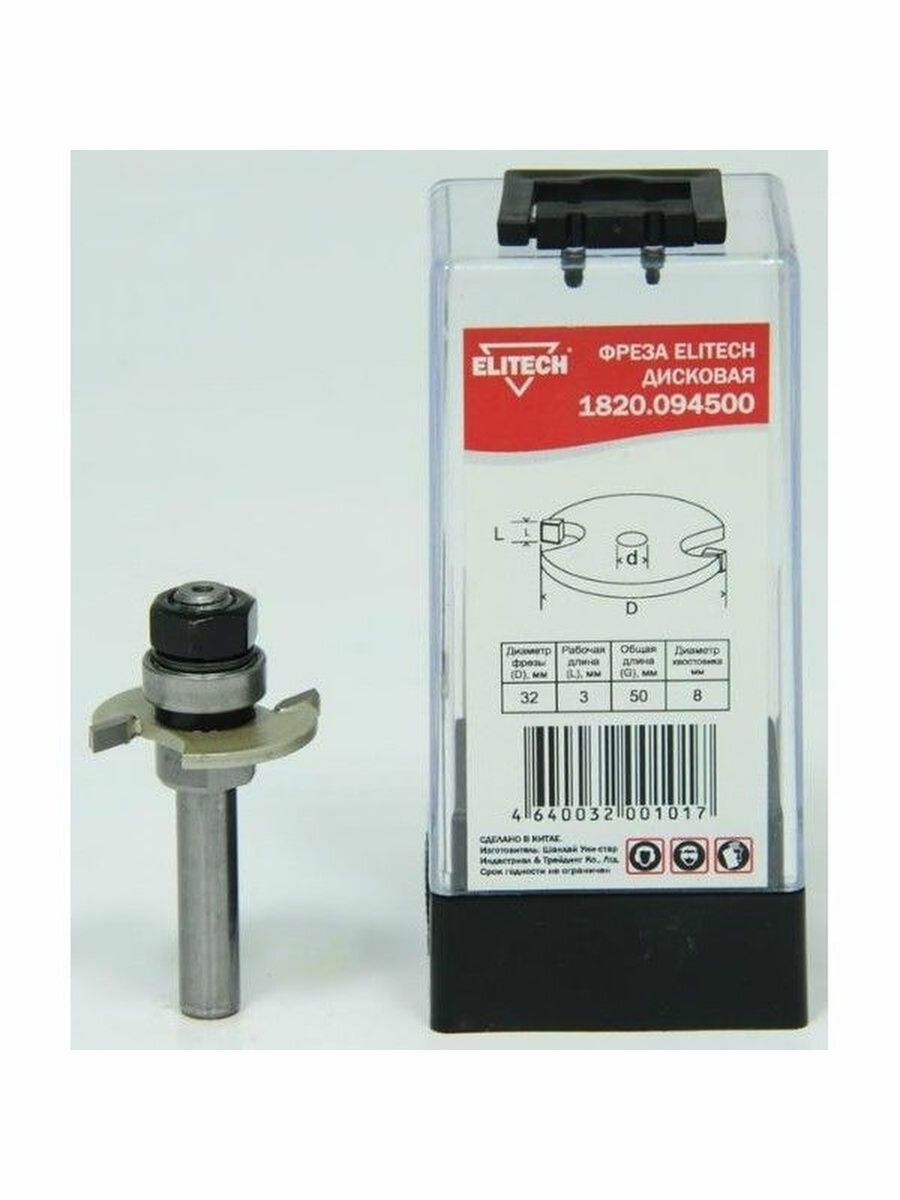 Фреза по дер. Elitech d=32мм d(посад.)=8мм (фрезеры) (упак.:1шт)
