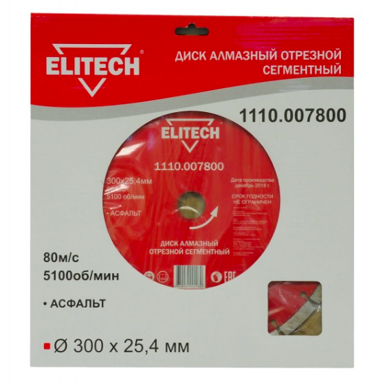 Алмазный диск Elitech по асфальту 300мм 25.4мм 1шт 1110.007800