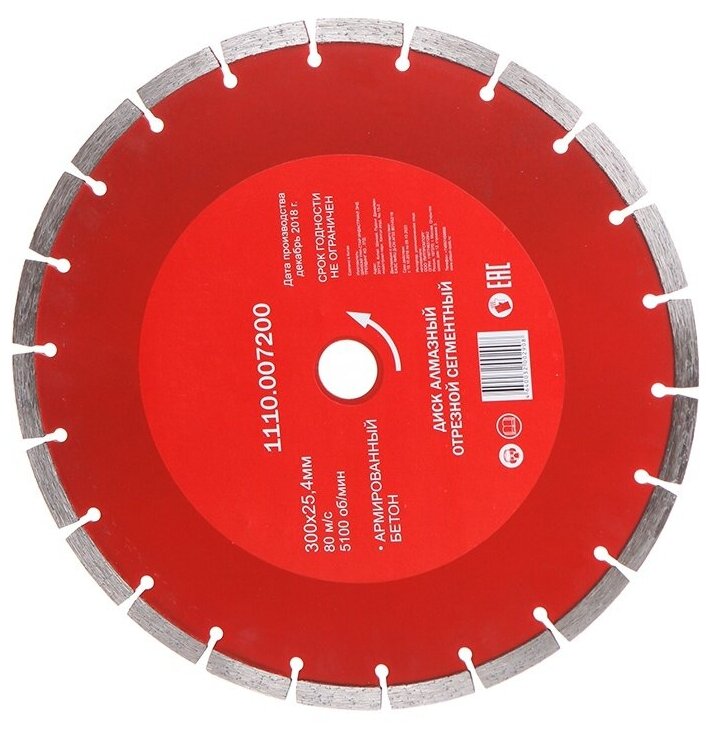 Алмазный диск Elitech по бетону 300мм 25.4мм 1шт 1110.007200