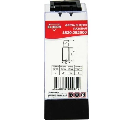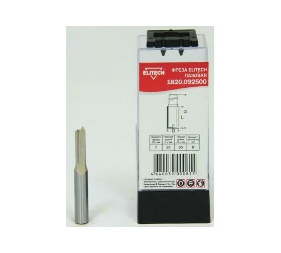 Фреза пазовая Elitech , 2 лезвия, хвостовик - 8 мм, 15х20 мм.