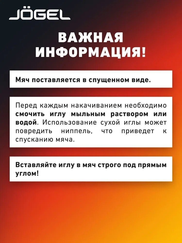 Внимание: мяч поставляется в спущенном виде. Рекомендуем приобрести насос и иглу для накачивания.