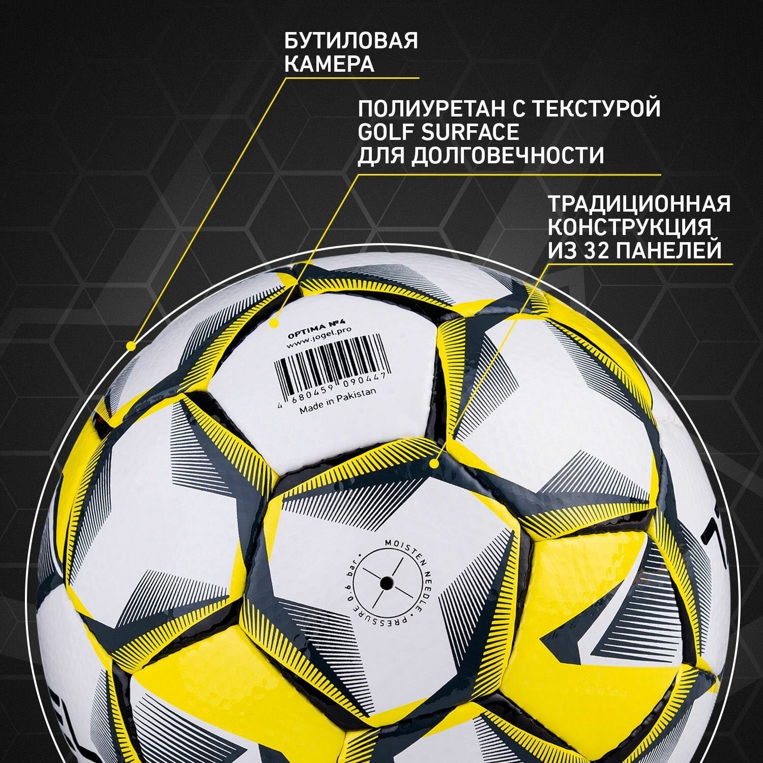 Jögel Optima – бестселлер в линейке футзальных мячей Jögel, и мы сделали его еще лучше. Мяч исполнен в новой стилистике линейки Training. Он стал ярче, заметнее и профессиональнее. Традиционная ручная сшивка в сочетании с качественным полиуретаном c текстурой Golf Surface придает мячу крепкость, долговечность и универсальность. Швов практически не видно, панели подогнаны идеально. Мяч оснащен бутиловой камерой со специальным наполнителем, обеспечивающим рекомендованный FIFA низкий отскок