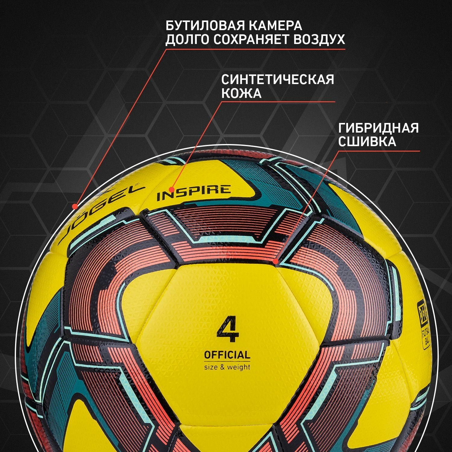 Мяч футбольный JOGEL Inspire для твердых покрытий 4-й размер желтый/черный [ут-00018634]