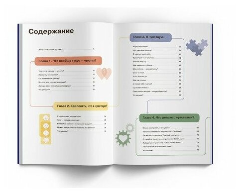 Я полистала книгу, понимаю, что какие-то моменты мы регулярно проговариваем с детьми, а вот много и нового. При том, ведь не каждый день по душам разговоры ведутся, а так, подросток может открыть книгу и почитать как появляется чувство, как научиться осознанно воспринимать эмоции, что делать с плохими и хорошими чувствами, как включить радость. О тревоге, обиде и много еще о чем.