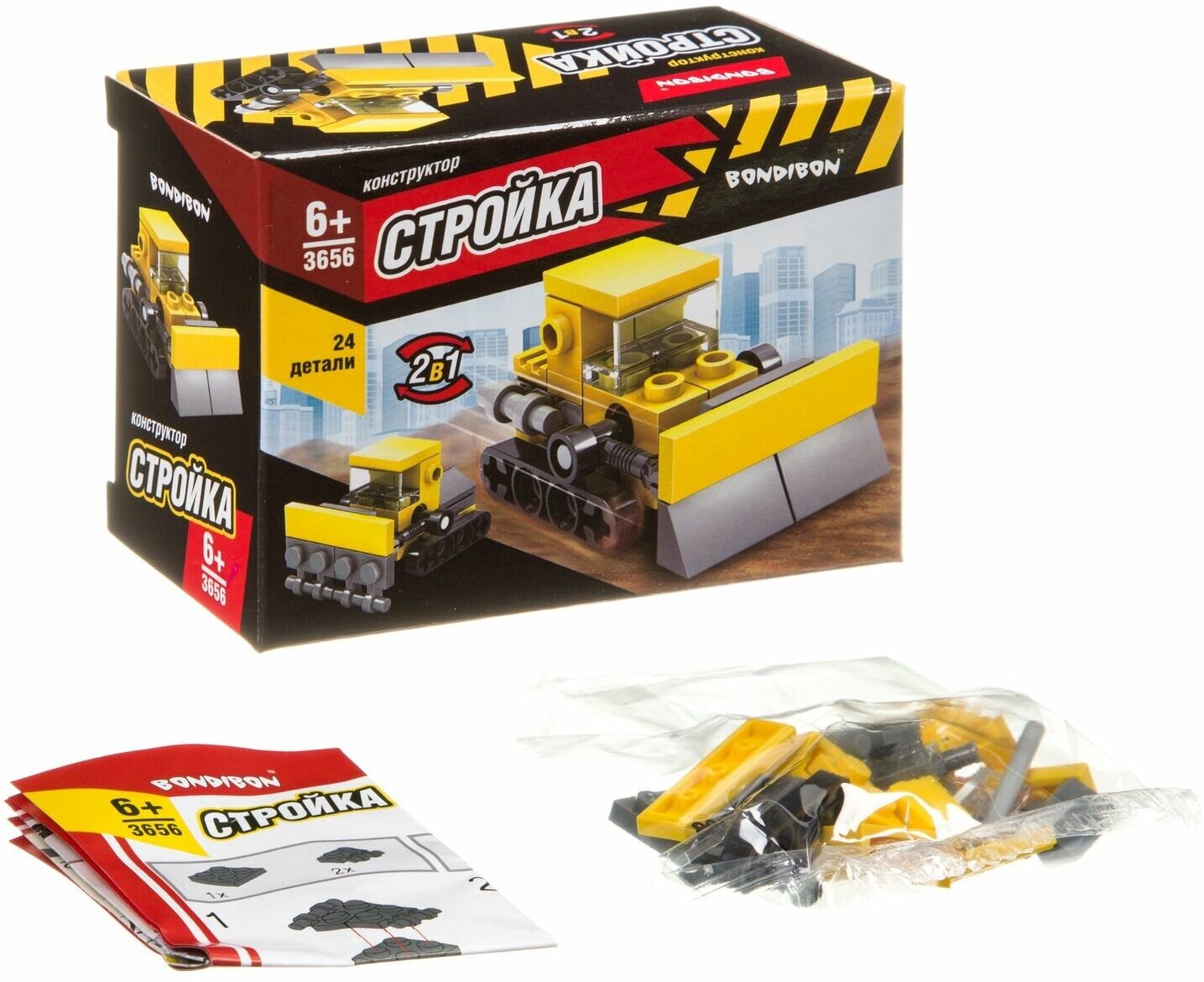 Конструктор Стройка Бульдозер 24 дет. ВВ3656 Bondibon