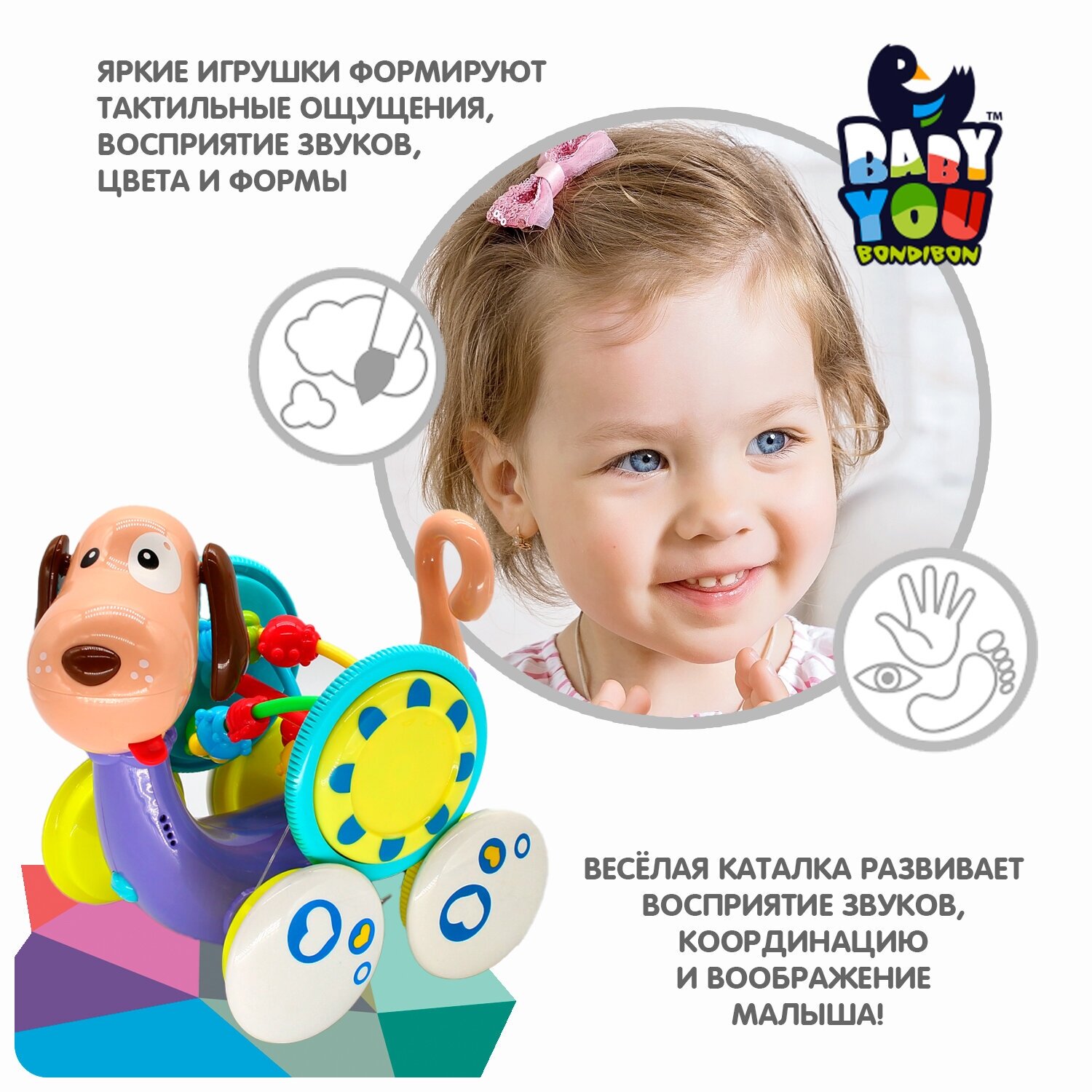 Погремушка-каталка "СОБАКА" музыкальная, с механизмом запуска Baby You Bondibon – это отличный вариант подарка для малыша.