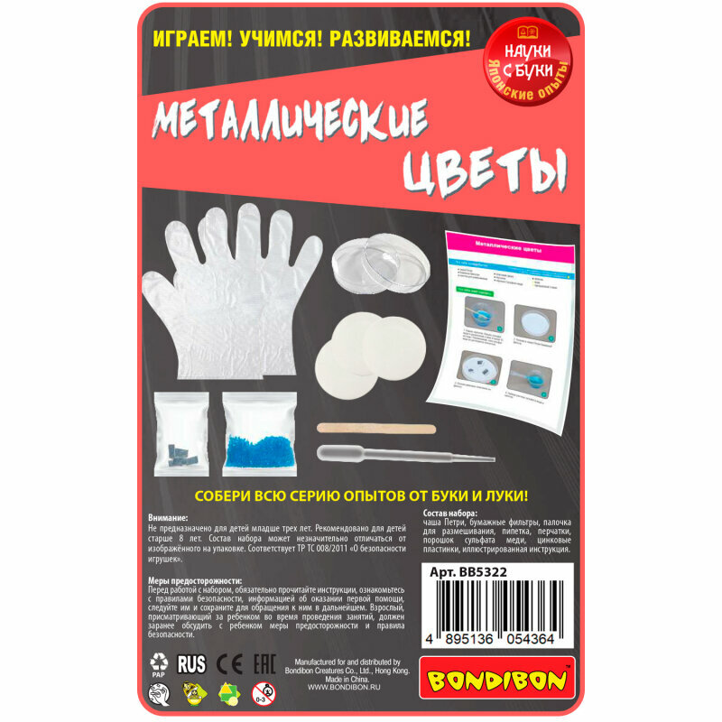 | Наименование модели | Японские опыты Bondibon Науки с Буки, "Юный химик", Металлические цветы |