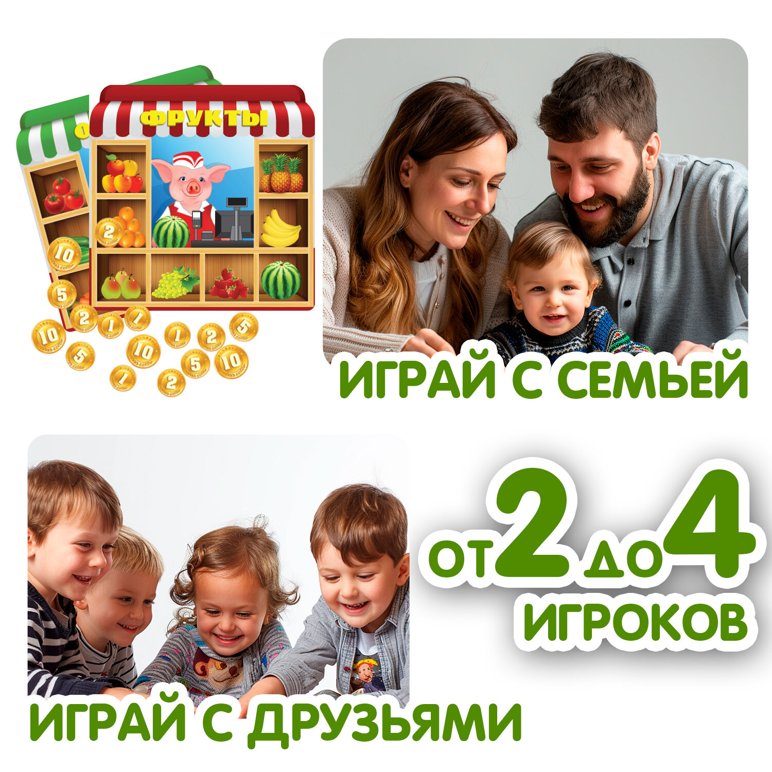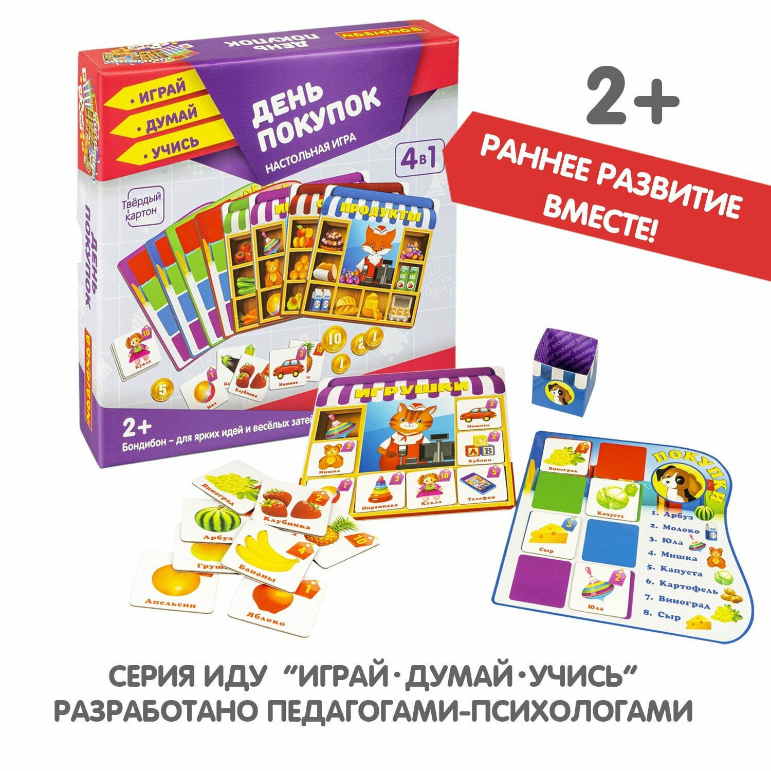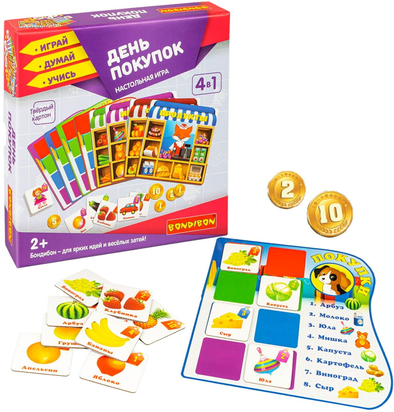 Играйте и развивайтесь вместе с настольной игрой «День покупок» 4 в 1 Bondibon.