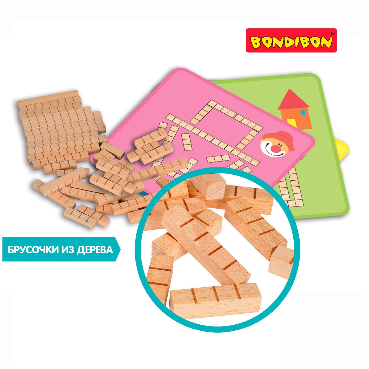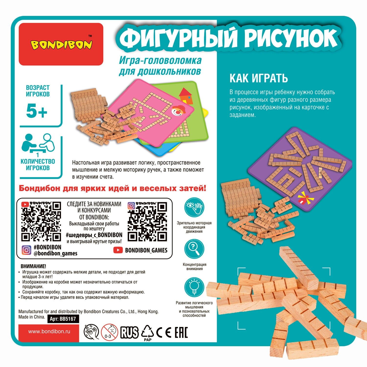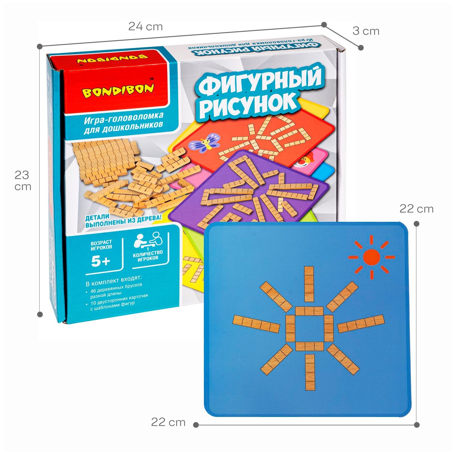- Игра-головоломка «ФИГУРНЫЙ РИСУНОК» 20 логических заданий с деревянными блоками БондиЛогика Bondibon