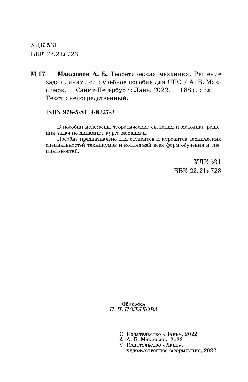 Сервис сравнения цен СкидкаГИД предлагает сравнить цены на товар «Книга: Теоретическая механика Решение задач динамики Учебное пособие для СПО (А. Б. Максимов); Издательство ЛАНЬ, 2022»