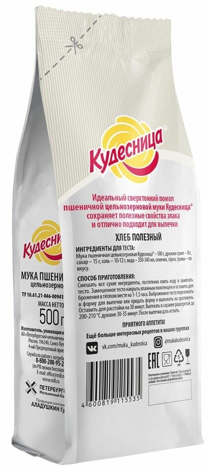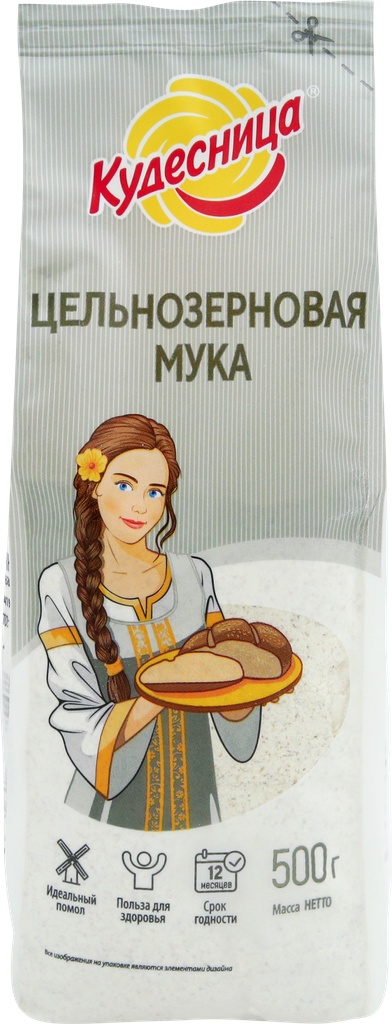 Мука пшеничная цельнозерновая ТМ Кудесница 500г АО "Петербургский мельничный комбинат"
