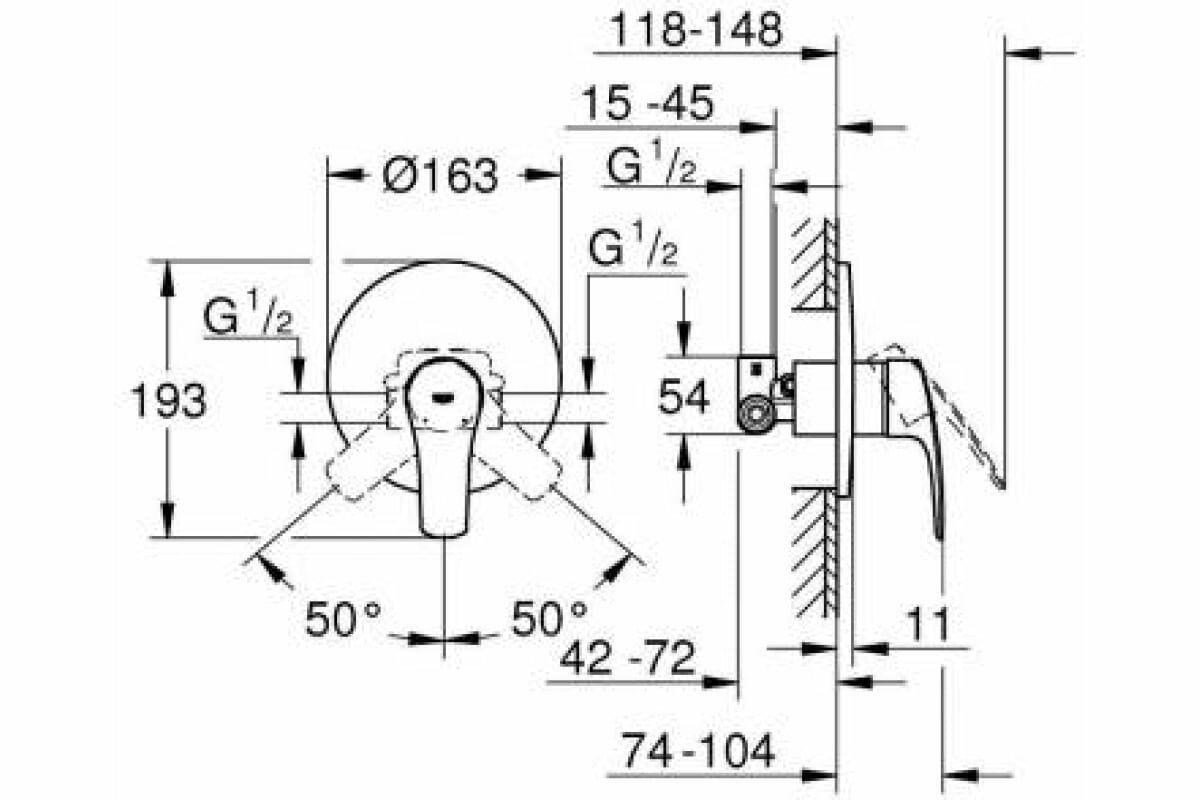 - Механизм: керамический картридж Grohe SilkMove 46 мм.