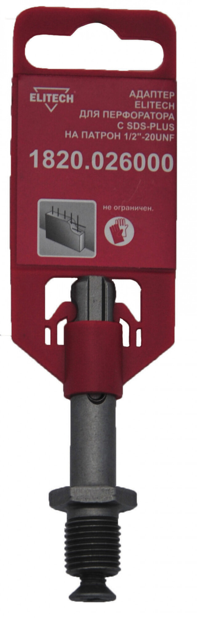 Адаптер-переходник Elitech применяется с перфораторами и расширяет технологические возможности инструмента. Предназначен для установки сверлильного патрона в перфораторы с типом крепления SDS-plus.
