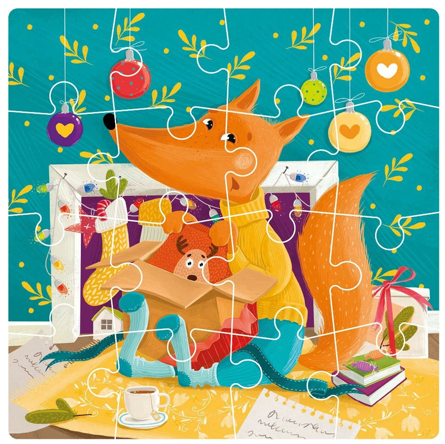 Лисичка проводит зимний вечер возле камина и упаковывает подарки для своих друзей!