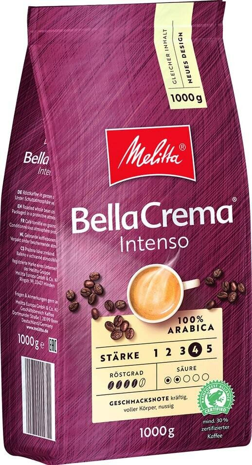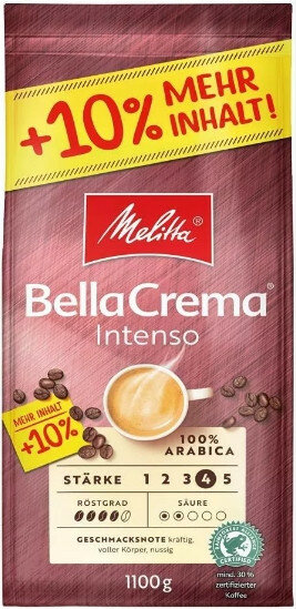 MELITTA Bella Crema Intenso— это яркий, насыщенный бленд отборных сортов 100% арабики. Темпераментный, с нежной пенкой и низкой кислотностью (уровень кислотности 2 из 5). Средне-темная обжарка обеспечивает плотность, изысканный аромат и крепость любимого напитка. Кофе отличается интенсивным вкусом с ореховыми нотами.