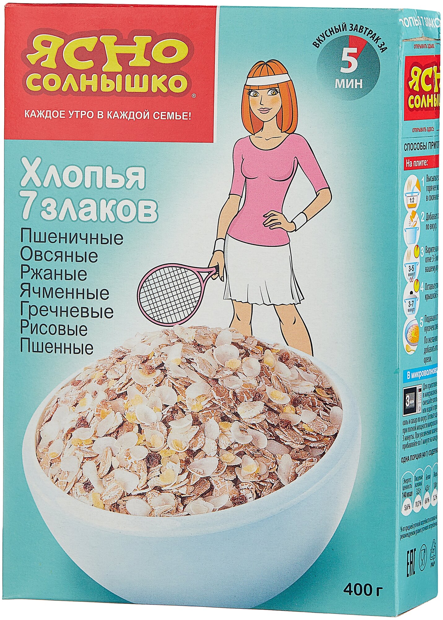 Сервис сравнения цен СкидкаГИД предлагает сравнить цены на товар «Хлопья Ясно солнышко 7 злаков 400г Петербургский МК»