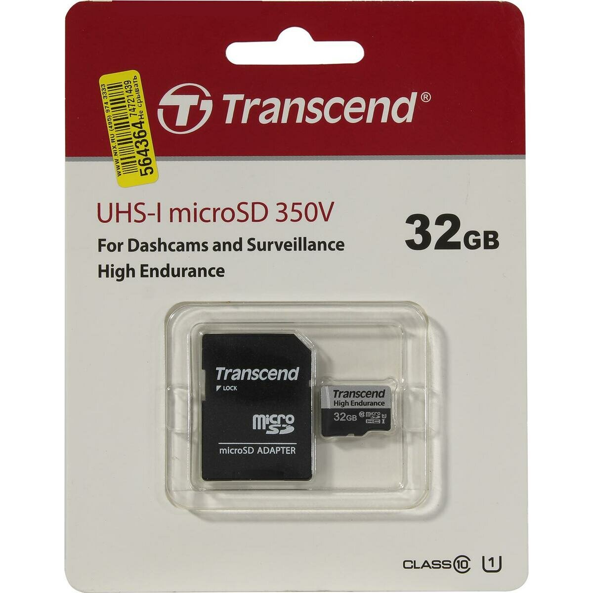 Карта памяти Transcend 32GB microSD w/ adapter U1, High Endurance R95/W45 (TS32GUSD350V)
