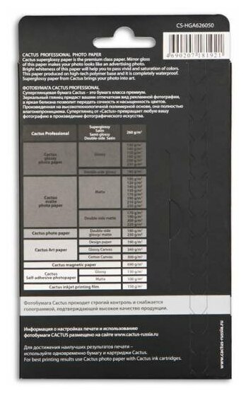 Cactus Prof CS-HGA626050 — глянцевая фотобумага формата 10х15 см для струйной печати.