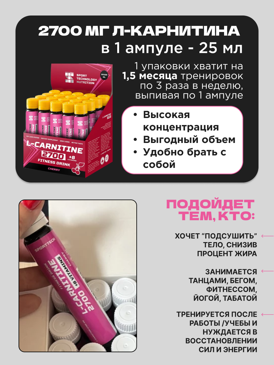 L-карнитин SPORT TECHNOLOGY NUTRITION 2700 20x25мл ампулы клюква