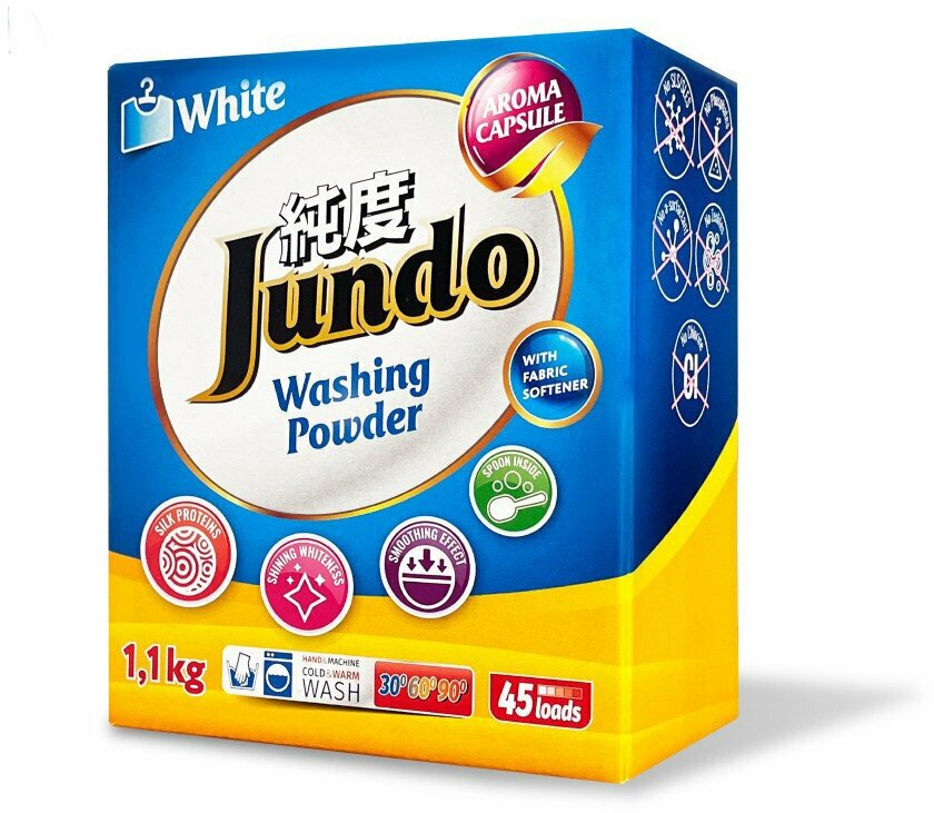 Сервис сравнения цен СкидкаГИД предлагает сравнить цены на товар «Порошок для стирки белого белья Jundo 2в1 с кондиционером Концентрат 11 кг Стиральный порошок для белого белья с кондиционером Aroma Capsule 2 в 1, концентрат»