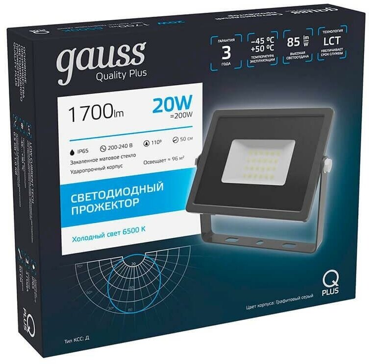 Светильник Gauss Прожектор LED Qplus 20W 1700lm 6500K 200-240V IP65