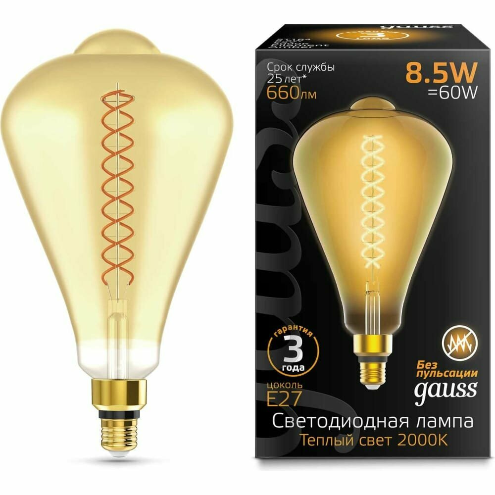 Светильник Gauss Лампа Filament golden flexible LED Е27 ST164 8.5W 660lm 2000К